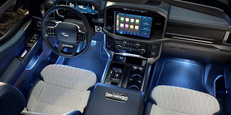 An F-150® tows, hauls and grinds all day long, so you know it’s not going to shy away from a little paperwork. The all-new F-150® interior puts productivity at the forefront. So check off your to-do list from the cab, where an available Interior Work Surface, SYNC® 4 and available 12-inch productivity screen are at your disposal.