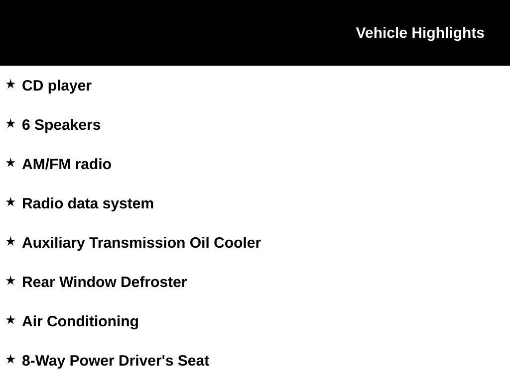 - Radio: AM/FM Stereo/Single-CD Player -inc: 6 speakers