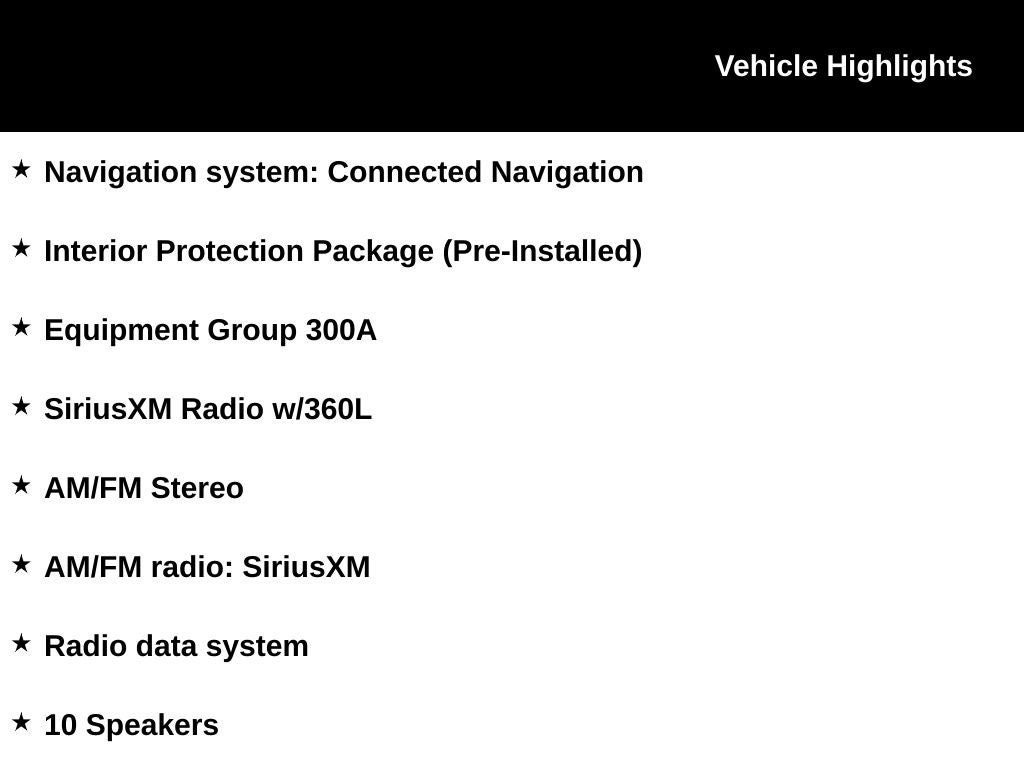 - SiriusXM Radio w/360L -inc: super categories, live sports categories, For You recommendations, SiriusXM listener profiles and 3 months prepaid subscription, Service is not available in AK or HI, Trial length and service availability may vary by model year or trim, SiriusXM audio and data services each require a subscription sold separately, or as a package, by SiriusXM Radio Inc, Your SiriusXM service will automatically stop at the end of your trial unless you decide to subscribe, If you decide to continue service after your trial, the subscription plan you choose will automatically renew thereafter and you will be charged according to your chosen payment method at then-current rates, Fees and taxes apply, To cancel you must call SiriusXM at 1-866-635-2349, See SiriusXM customer agreement for complete terms at www.siriusxm.com, All fees and programming subject to change, Not all vehicles or devices are capable of receiving all services offered by SiriusXM, Current information and features may not be available in all locations, or on all receivers, Satellite and streaming lineups vary slightly, Sirius, XM and all related marks and logos are trademarks of Sirius XM Radio Inc