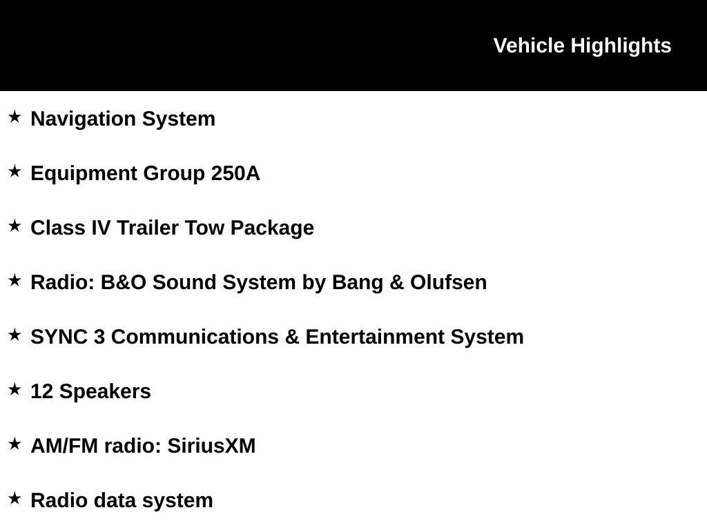 - Radio: B&O Sound System by Bang & Olufsen -inc: MP3 capability, 12 speakers, subwoofer, HD Radio, speed-compensated volume and SiriusXM includes a 3 month prepaid subscription, Service is not available in Alaska and Hawaii, All SiriusXM services require a subscription, sold separately by SiriusXM after the trial period, Your SiriusXM service will automatically stop at the end of your trial unless you decide to subscribe, If you decide to continue service, the subscription plan chosen will automatically renew and be charged according to your chosen payment method at the then-current rates, Fees and taxes apply, See the SiriusXM Customer Agreement & Privacy Policy at https://www.siriusxm.com/ www.siriusxm.com for full terms and how to cancel, which includes online methods or calling 1-866-635-2349, Available in the 48 contiguous United States, D.C, and Puerto Rico (w/coverage limits and capable receiver), Visit http://www.siriusxm.com/FAQS for most current service area information, Availability of some services and features is subject to device capabilities and location restrictions, All fees, content and features are subject to change, SiriusXM, Pandora and all related logos are trademarks of Sirius XM Radio Inc, and its respective subsidiaries